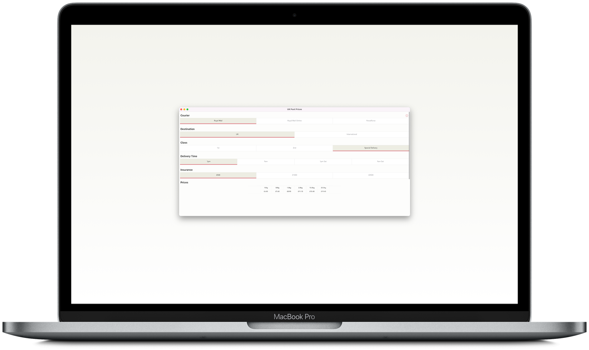 UK Post Prices works great on all screen sizes from the smallest smart phone upto the largest Mac.